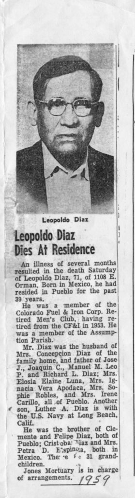 Leopoldo’s obituary from the Pueblo Chieftain Newspaper.